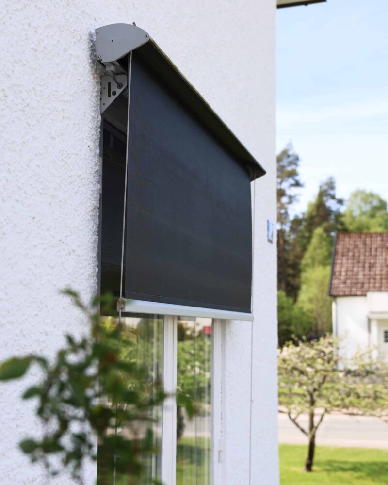 Hestra Bertil är en enkel och nätt vertikalmarkis som fäster längs fasaden med smidig linstyrning. Screenväven filtrerar effektivt solljus utan att blockera utsikten, vilket ger ett behagligt ljus men behåller kontakt med omgivningen.