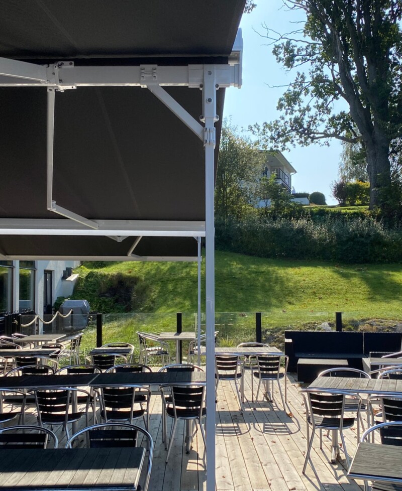 Hestra Helmer är en fristående dubbelterrassmarkis som fungerar som ett extra rum utomhus. Den placeras enkelt på olika underlag utan att kräva väggfästen och skapar ett effektivt skydd mot värme, UV-strålning och bländning.